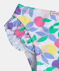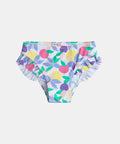 A fancy printed swimsuit bottom, with pretty ruffles on the sides, for a summer full of charm for baby girls.