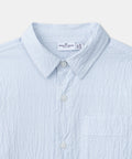 This elegant and lively shirt is perfect for summer. Made from blue and white striped seersucker, it features a straight, comfortable cut. Stripes and a chest pocket create a fresh and chic style suitable for casual or ceremonial occasions.