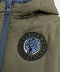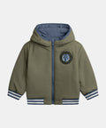 Designed for boys, this reversible blue and green jacket is ideal for mid-season and cool days. Made from polyester, it features a zippered front opening, a hood, and two practical pockets for comfortable everyday wear. The tiger and "D" badges on the front add a playful, sporty touch, with two possible looks thanks to its reversible design.
