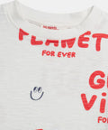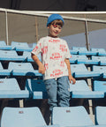 Designed for boys, this short-sleeved, ecru-colored cotton T-shirt with a slubbed finish is perfect for warm days. Its soft fabric ensures optimal comfort throughout the day. The text and emoji print adds a modern and playful touch to the look.