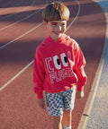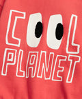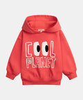 Designed for boys, this red brushed fleece sweatshirt is perfect for the cooler months. Its soft, warm fabric and hood provide comfort and protection for everyday wear. The "Cool Planet" graphic on the front adds a modern, playful touch to the look.