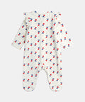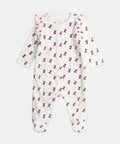 This cotton blend velvet onesie combines softness and romantic style for your baby's comfort. Its ultra-soft fabric, treated for even more softness, is gentle on little ones' sensitive skin. Its practical snap closure at the front makes dressing and changing easy. The ruffles on the shoulders add a delicate touch, while the floral heart print brings tenderness and whimsy.