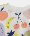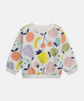 Designed for girls, this brushed fleece sweatshirt is perfect for the cooler months. Its comfortable fit and round neck make it easy to slip on for active days. The fruit print adds a cheerful and colorful touch, ideal for brightening up everyday outfits.