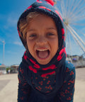 Navy Soft Boa Lined Cagoule With Red Flower Pattern