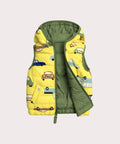 This reversible gilet is ideal for keeping warm and stylish. One side is printed with cars & buses and the other is green. The zippered opening and water-repellent treatment ensure comfort and protection from the elements.