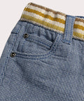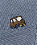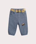 These striped dobby pants are perfect for baby boys, suitable for mild seasons. The waistband provides a snug, comfortable fit. The car animation on the knee adds a playful, original touch to the outfit.