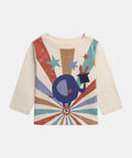 This long-sleeved cotton T-shirt combines softness and comfort for cooler days. Its supple, breathable fabric protects little ones' sensitive skin while providing good insulation. The magician elephant design against a backdrop of stars and pastel rays adds a playful, magical touch, and the snap fastener at the shoulder makes dressing easy, even with an active baby.