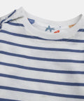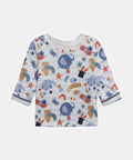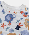 This reversible cotton jersey T-shirt combines softness, comfort, and whimsy for sunny days. Its soft, breathable fabric is gentle on little ones' sensitive skin. It offers two styles: one side with animal prints and pastel shapes for a playful touch, and one side with thin stripes for a more classic look. Its practical snap closure at the shoulder makes dressing easy, even when baby is moving around a lot.