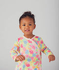 Radiant and spring-like, this pretty onesie with multicolored flower patterns is a real cocoon of softness to accompany your child's nights and naps. Made entirely of cotton, it offers optimal comfort throughout the night. Its bright floral patterns in shades of yellow, pink, and blue bring a touch of freshness and cheerfulness to your baby's nighttime wardrobe. Its practical asymmetrical opening at the front makes dressing easy, avoiding excessive handling of your baby when changing.