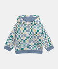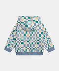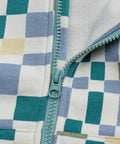 Cream & Blue Check Cotton Fleece Hoodie