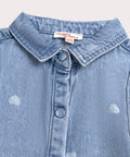 This denim dress is designed for active children in temperate seasons. Its hard-wearing fabric and practical cut with snap front opening guarantee easy-to-wear comfort. The heart print adds a soft, cheerful touch to their everyday style.