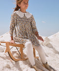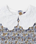 Designed for cool-weather dreamers, this corduroy dress is both comfortable and refined. Lined in cotton, it features an embroidered claudine collar with blue smocking. Its back zipper opening and delicate flowers add to its poetic universe.