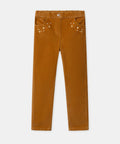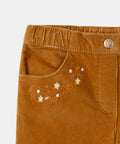 For energetic kids in autumn-winter, these yellow corduroy pants bring comfort and style. Their slim fit is enhanced by discreet embroidery on the pockets. Depending on age, they feature either an adjustable elasticated waistband or a zipped front opening.
