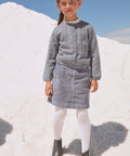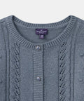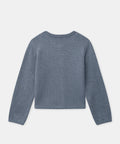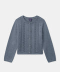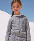 This blue knitted cardigan is perfect for active children during the cold season. Designed with metallic yarns and an openwork knit, it offers warmth and comfort while remaining lightweight. Front buttons make for easy dressing and bright styling.