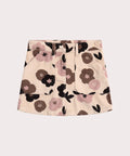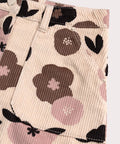 This floral corduroy skirt is designed for children, ideal for cooler seasons. Its elasticated waistband ensures a comfortable fit. The front opening with heart-shaped snap button and patch pocket add charming details.