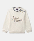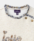 Designed for cheerful kids who love the softness of winter, this sweatshirt is both comfortable and practical. It's made of fleece with a high collar printed with flowers and the inscription "Jolie fleur" (Pretty flower) enhanced with gold. Shoulder snaps make it easy to put on every day.