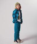 This warm blue lined jogging pant is perfect for keeping kids comfortable on chilly days. Its fleece-lined fabric provides softness and warmth, ideal for autumn and winter. The elasticated waistband with drawcord ensures an easy, secure fit.