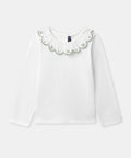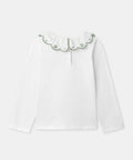 For an elegant child for everyday wear, perfect for mid-season. Soft jersey and a poplin collar structure the fit. Contrasting embroidery and the ruffled collar add a refined touch.