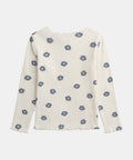 Designed for girls, this long-sleeved ribbed t-shirt is perfect for mid-season. Its soft and comfortable fabric, combined with wavy edges, offers a pleasant wear for everyday use. With a floral print, it adds a sweet and elegant touch to outfits.