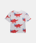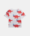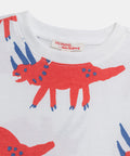 Designed for boys, this off-white cotton short-sleeve t-shirt is perfect for sunny days. Its soft material ensures comfortable wear all day long. The dinosaur print adds a playful and colorful touch to the everyday look.