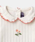 For toddlers sensitive to comfort, ideal for everyday wear. Ribbed cotton and snap-button openings make dressing easy. Small flowers add tenderness and softness.