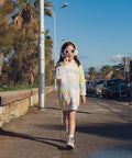 Perfect for the cooler months, this brushed fleece sweatshirt dress keeps kids comfortable every day. Its soft fabric, combined with a practical hood and kangaroo pocket, makes it easy to wear. Its colorful print adds a bright and cheerful touch that stands out.