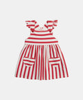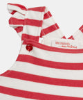 This striped dress combines softness and color thanks to its piqué cotton fabric, ideal for summer comfort and a nautical charm for sunny days. Made from cotton, the piqué fabric is lightweight and breathable, ensuring a material that respects your baby's sensitive skin. The gathers on the skirt and ruffles on the straps add a delicate touch and ease of movement, while the adjustable straps with two pearl buttons make dressing easy and allow for size adjustment. The two heart-shaped pockets on the front add a practical, fashionable, and refined detail to this summer style.