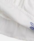 - Blue flower embroidery on the bust and hem