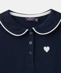 Designed for a cheerful child every day, perfect for mid-season. The soft jersey provides comfort and an easy-to-wear fit. The heart embroidery, Peter Pan collar, and gathers add a classic charm.