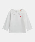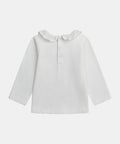 This cotton jersey bra combines softness, lightness, and comfort for mild days. Its supple fabric with a softened feel is gentle on little ones' sensitive skin. The ruffled cotton voile collar adds a touch of refinement, while the small heart embroidery adds a cute detail. The practical snap closure at the back makes it easy to dress your little one every day.