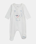Newborn White Bear Applique Velour Sleepsuit