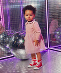 This nude velvet and tulle dress is perfect for baby girls, ideal for the cooler seasons. It offers softness and elegance with its Claudine collar and practical back opening. Its delicate cut makes it both comfortable and refined.