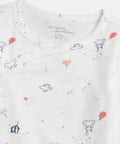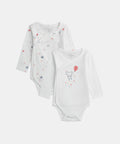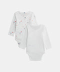 This set of two cotton ribbed newborn bodysuits includes one printed design and one decorated with a bear motif, with a full front opening with snaps and an easy-to-wear wrap-around style. It provides comfort and practicality to accompany your baby's first days with peace of mind.