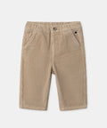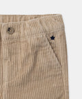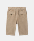 Suitable for winter days, these pants ensure comfort and practicality. Light beige corduroy is complemented by front and decorative back pockets. The elasticated waistband with decorative button makes them easy to wear every day.