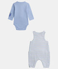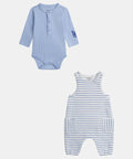 Newborn Blue Ribbed Cotton Bodysuit & Stripe Cotton Dungarees