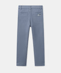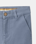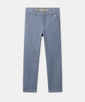 Designed for winter, these grayish-blue twill pants keep kids comfortable with their jersey lining. They feature four practical pockets and belt loops. Adjustable waistband and zip/snap closure make them easy to wear every day.