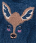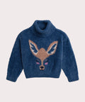This blue feather-knit sweater is perfect for children on cool autumn and winter days. Soft and enveloping, it features a stand-up collar to keep them warm. Its deer motif in jacquard and embroidery adds a tender, poetic touch to their outfits.