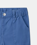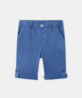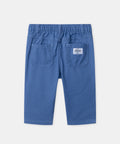 Perfect for active babies, these blue twill pants are comfortable and practical. Elastic waistband and multiple pockets. Sergent Major and roll-up cuffs add style and functionality.