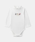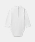 Ideal for the cold season, this body is a gentle companion for little ones. Made from ecru cotton with a stand-up collar and fancy trims, it combines comfort and style. Snaps at back and crotch for easy dressing.