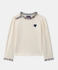 Ideal for kids who like comfort in winter, this t-shirt can be worn under a cardigan or sweater. Its peach-skin-effect jersey is pleasantly soft. The floral ruffle and heart embroidery add a tender, refined detail.