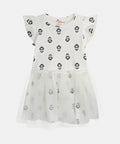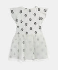 White Floral Print Cotton Dress With Tulle Petticoat