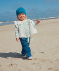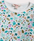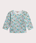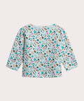 This leaf-patterned tee shirt is designed for baby girls, ideal for cooler seasons. Its thick jersey fabric ensures softness and warmth. The snap opening on the shoulder makes dressing easy and adds a practical touch to this garment.