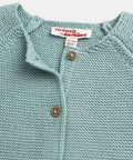 This powder green knit cardigan wraps your baby in softness and warmth on cool days. Made from a cotton blend, it issupple, soft, and comfortable to wear. The raglan sleeves add a modern touch and make dressing easier, while the wood-effect buttons add a natural and elegant touch. Practical, it opens fully at the front for easy everyday dressing.