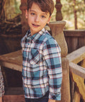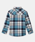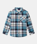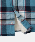Designed for winter, this shirt keeps active kids warm. Made from flannel lined with synthetic fur, it's soft and comfortable. Its blue checks and patches give it a warm, casual look.