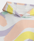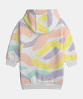 Perfect for the cooler months, this brushed fleece sweatshirt dress keeps kids comfortable every day. Its soft fabric, combined with a practical hood and kangaroo pocket, makes it easy to wear. Its colorful print adds a bright and cheerful touch that stands out.