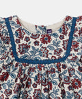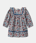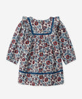 Designed for little girls in winter, this dress ensures comfort and warmth. Made from printed corduroy, it is lined for added softness. Its ruffles and lace details add refinement and elegance.