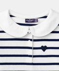 For a child with a soft style, perfect for mid-season. The jersey moves comfortably with her. The contrasting Peter Pan collar and heart embroidery add an elegant touch.