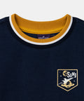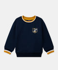 Designed for chilly days, this navy blue fleece sweatshirt keeps kids warm. Its synthetic fur interior adds extra softness. Glow-in-the-dark patterns on the chest add a playful touch.
