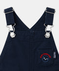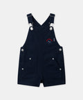 Perfect for active babies in spring and summer, these navy blue shorts are comfortable. Snap closures at the waist and crotch and adjustable straps make dressing easy. A chest pocket with an embroidered tennis motif and ruffles add sporty style and charm.