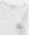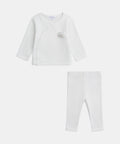 This newborn set combines a ribbed, stretchy wrap top decorated with a small padded bear head with elasticated waist leggings for easy dressing. It is soft and comfortable, ideal for keeping your baby comfortable and happy.